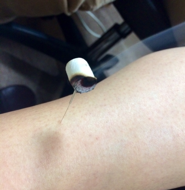 そして、毎回おなじみになりました「灸頭鍼」 鍼をさした上にお灸を置くのですが、輻射熱でじんわりと温まって、とっても気持ちいいんです。